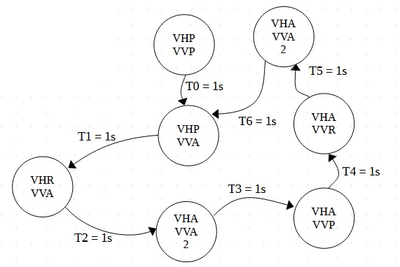 Etat 1 : voie horizontale passe et voie verticale à l’arrêt. (VHP, VVA)